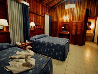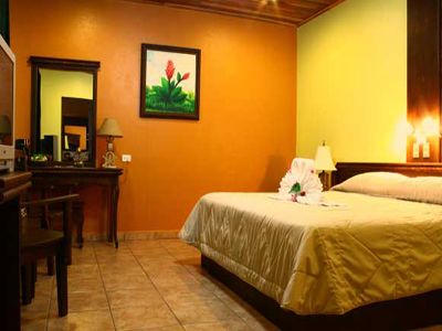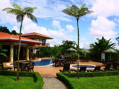 Arenal Kioro offers a fabulous place with a natural viewpoint to the Arenal Volcano. The hotel has 27 acres of undulating land, surrounded by two streams (La Palma and Kioro) with crystalline waters that begin to flow in the Arenal Volcano National Park. It has two paths where plant species are identified. Besides, private thermal springs surrounded exuberant gardens for our customer's delight. The hotel has 53 suites, 11 with one king bed and a daybed and 42 with two Queen bed and a day bed, with two terraces with the best panoramic volcano and mountain view , hydro-massage, air conditioning, safe deposit box, minibar, coffee maker, hot water, direct dialing telephone, satellite television, hair dryer, key card, safety locks, internet connections. Heliconias Restaurant offers exquisite dishes elaborate by the chef with original recipes based on international food with specialties on meats and sea food. Neidin Spa is a little nest where