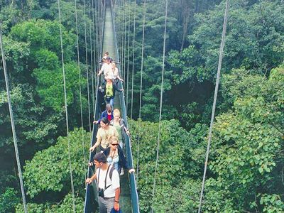 The Rain Forest Aerial Tram will take you on a fascinating tour through the tall tropical tree-tops that offers you the chance to see wildlife found only within the canopy system. Home to two-thirds of all rain forest species, this hanging garden of plants and animals is a magical world of rare beauty and amazing biological diversity. After a short hike through the lush wilderness, you will enjoy a 1¼ hour ride in the tram, and then enjoy a delicious typical lunch and still have time to relax and browse in the souvenir shop at the tram base.