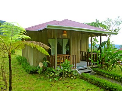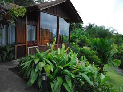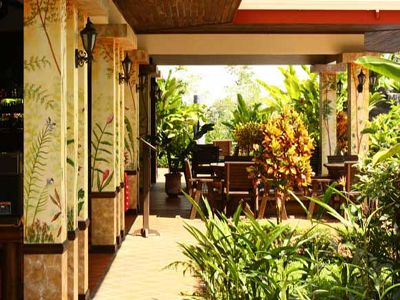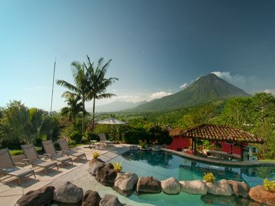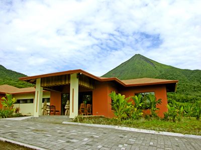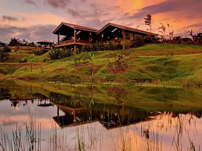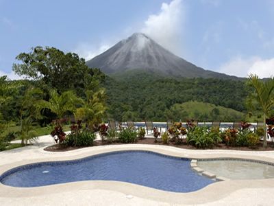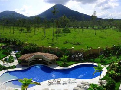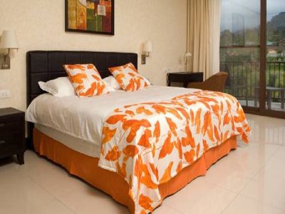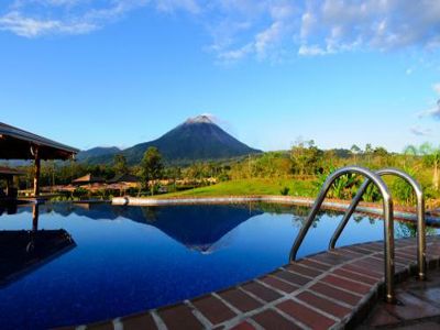 Arenal Kioro offers a fabulous place with a natural viewpoint to the Arenal Volcano. The hotel has 27 acres of undulating land, surrounded by two streams (La Palma and Kioro) with crystalline waters that begin to flow in the Arenal Volcano National Park. It has two paths where plant species are identified. Besides, private thermal springs surrounded exuberant gardens for our customer's delight. The hotel has 53 suites, 11 with one king bed and a daybed and 42 with two Queen bed and a day bed, with two terraces with the best panoramic volcano and mountain view , hydro-massage, air conditioning, safe deposit box, minibar, coffee maker, hot water, direct dialing telephone, satellite television, hair dryer, key card, safety locks, internet connections. Heliconias Restaurant offers exquisite dishes elaborate by the chef with original recipes based on international food with specialties on meats and sea food. Neidin Spa is a little nest where