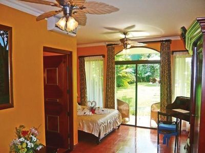 Villas Rio Mar is a medium sized sustainable and comfortable eco lodge . Situated amidst tropical gardens and forestry, on walking distance to Dominical beach, and right on the banks of the river Baru. A resort in polynesian style, offering a perfect combination of comfort, nature and adventure. With four National Parks and three Reserves in the vicinity Dominical is a unique central location for day trips. The area is well known for its surfing, canopying, rafting, whale watching and birding. Checking in means; you will disappear, out of normal life, obsessed by adventure and absorbed by nature.
