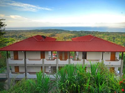 The Whales and Dolphins Boutique Hotel offers two private and quiet blocks with a total of 20 rooms, each with a private and stunning ocean view and balcony. The rooms are comfortably furnished with A/C, cable or satellite television, telephone, private bath with hair dryer, mini-bar, and coffee pots. The public areas include stunning ocean views, a wonderful restaurant, a bar and lounge area, and an infinity pool, which is divided into a safe children's pool, and a wonderfully relaxing adult pool. There is free Wi-Fi in all of the public spaces. The resident sloth "Jimmy" and the numerous toucans and parrots entertain the lucky guests as they relax on the pool decks or dine in the restaurant.