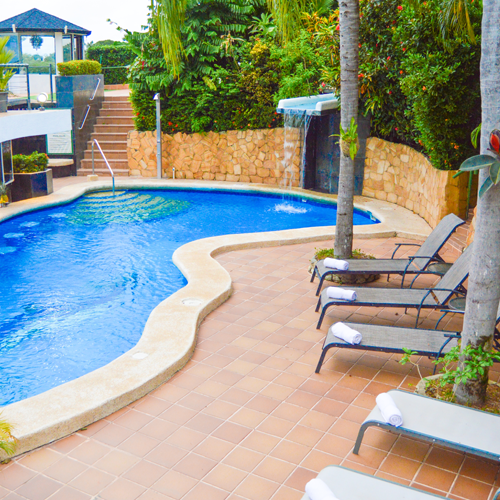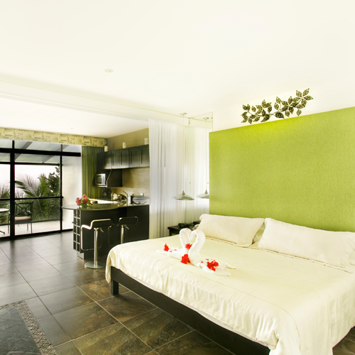 La Mansion Inn is situated on a mountainside overlooking the Pacific Ocean and Manuel Antonio National Park. The Inn is just minutes away from pristine beaches, sport fishing at Quepos harbor, and the local airport. Its a elegant Mediterranean design constructed by a team of Swiss architects and decorated by Italian interior designers. The interior displays a wealth of original paintings by some of Costa Rica's top artists. An eco-friendly project, water at the Inn is heated by solar energy. Originally built in 2000, the ICT awarded, Five Star rooms and suites are anything but "standard". The luxurious West Wing opened in 2006 and extra Penthouse Suites were added to the East Wing in 2009. Whether your visit is for business or leisure, our accommodations will meet your needs. All rooms are air conditioned, have cable television, private bathrooms, dresser, iron, coffee and tea maker with complimentary coffee and tea, in-room telephone system, radio/alarm clock and an outside sitting area and desk. Every room also has a sliding glass door which opens up to incredible views of the Pacific Ocean and surrounding jungle.