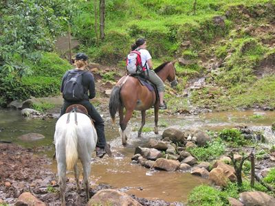 We will start off by riding through private trails and country roads for a total duration of two hours. During the tour, it will be possible to observe the abundant flora and fauna of this region, which is very particular since it is located on the continental divide. From there, you will be able to enjoy a spectacular view of the Gulf of Nicoya, and on a clear day, you will be able to see Arenal Lake and Volcano. Half way through the trek, we will take a short break for picture taking, and then we shall continue through the trails and local farms until returning.