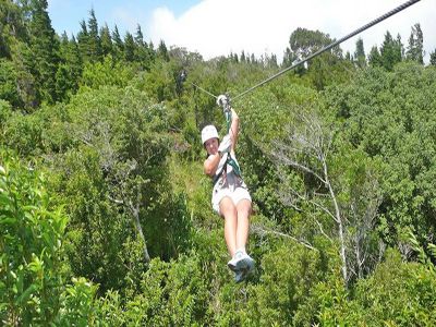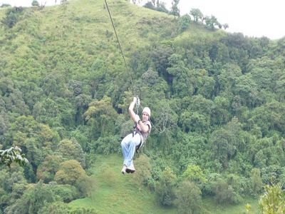 We will begin by climbing a wide metal staircase leading to the first platform. You will then slide through six more cables of different length and height, until arriving to the “rappel” section, where you will slide downwards at an exhilarating speed. After three more cables full of flying adventure, we will arrive to “Tarzan’s Swing,” another exciting part of this tour, which consists of a type of swing, where you can swing up to 30 meters up on the air. On this part of tour, you will be able to take photos, as well as rest as your tour companions catch up with you. Once this segment is concluded, we will embark on a short walk of 300 meters, which will take us to another section of the property with three additional cables. One of them is 400 meters long. This part of tour is famous for having longer and higher cables, giving you the opportunity to enjoy the landscape and natural beauty of the area, with trees aerial ferns, bromeliads, orchids, birds and other animals. As we finish this section, we will make ours second walk to the last cable, the longest and highest one, encompassing 600 meters in length and a height of 80 meters.