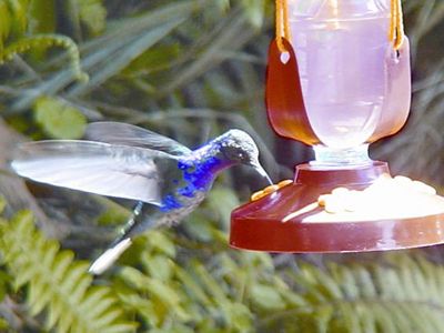 “Of all the animals that have conquered the aerial space, the hummingbird is the one that best dominates the art of flying” After a warm welcome on behalf of the company’s personnel, we can go and enjoy the magical hummingbird garden. During our stay in the garden, we will be surrounded by the enchantment of the cloud forest: trees covered in epiphytes, moss, vines and likens will be our scenery, and mainly the fast visit of our winged visitors. The garden counts with benches where we can sit and enjoy of the relaxing enchantment of this magical forest as well as water fountains, multicolor flowers and of course the feeders, that will be the ones in charges of attracting individuals of more than 14 species of hummingbirds, which will amuse us with their aerial maneuvers so close to us that in occasions we will feel the hum of their wings passing close to our ears, their feathers with many colors many times metallic, will change the colors depending of the angle the light hits the feathers , amusing us even more. Our visit will not have any time limit, therefore we will be the ones deciding in what moment we have relaxed enough and we feel we are prepared to abandon the enchantments of the garden and return to reality.
