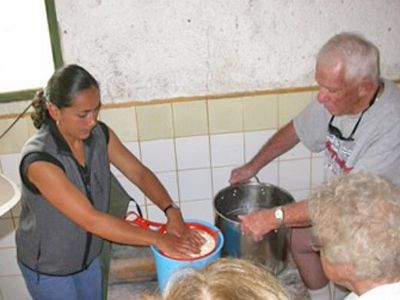 An explanation of the history of the cheese. The treatment to milk before preparing cheese is also explained. The cheese is done in an artisan way in which each participant may get involved in it.