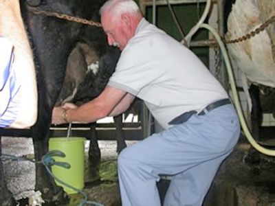 Tourists feed the calves with a bottle.
